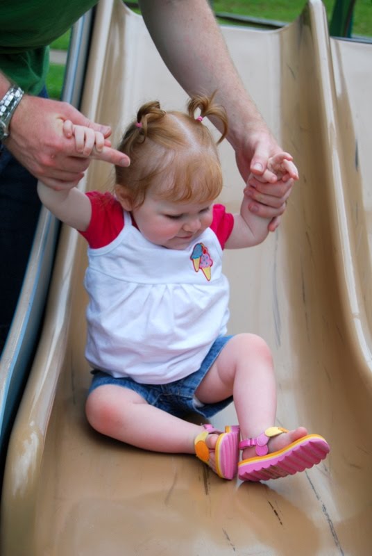 Abby loved watching the other kids, crawling after her big sister, eating sticks, rocks and whatever else she could get her hands on, and going down the slide!